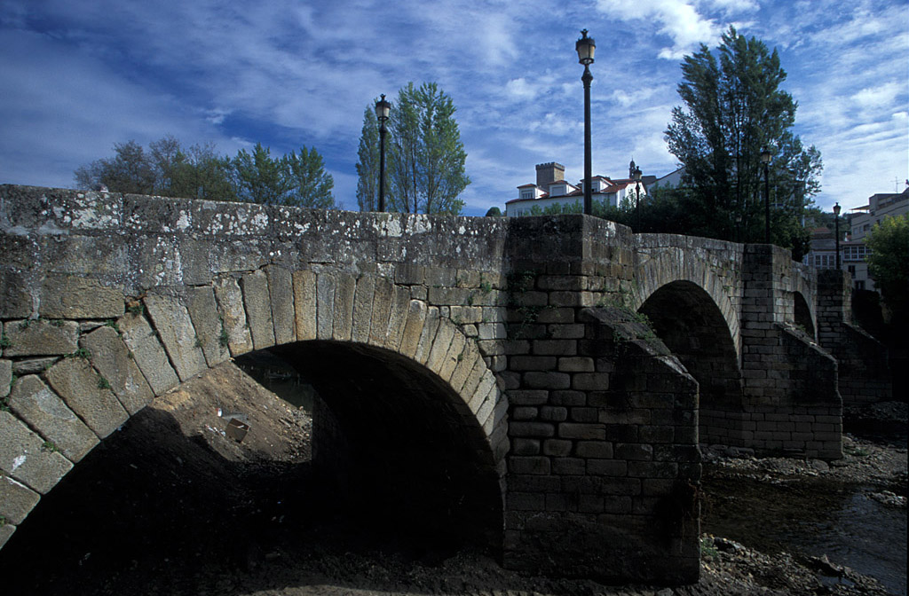 Situado en pleno centro de la ciudad y conocido popularmente como Puente Viejo o Puente de Piedra, hasta no hace mucho se consideraba de origen romano. Sin embargo, es probable que su construcción date de una etapa anterior, ya que se han detectado en él elementos medievales. Reconstruido en el siglo XVI, cuenta con seis arcos semicirculares (dos actualmente tapados). Junto con el Puente Nuevo une ambas partes de la localidad. Monforte conserva otros dos puentes de ese mismo siglo dignos de mención: el de los Picos y el del Parque de los Condes. (c) 2009 Herminia Bevia Villalba |