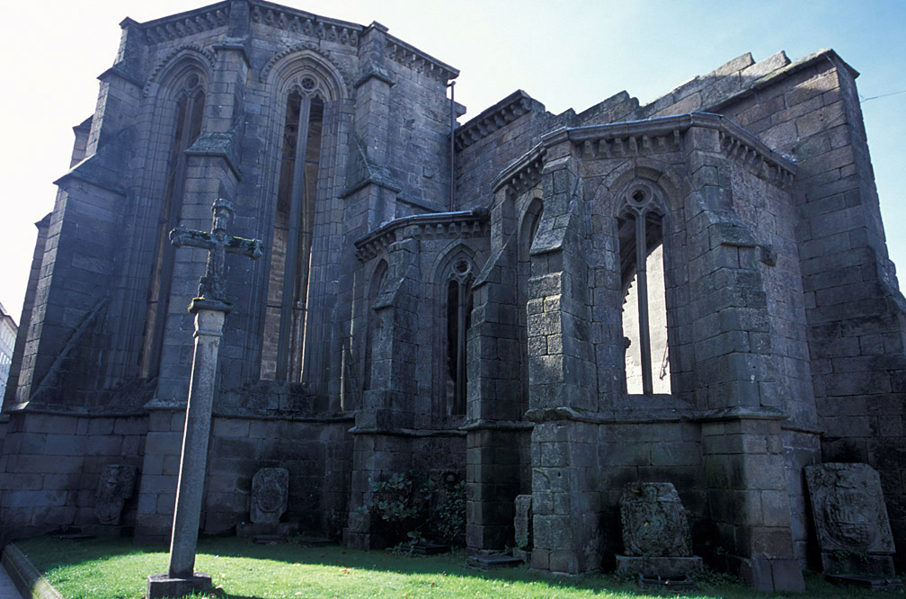 Este convento dominico, de estilo gótico, fue fundado en 1281. Sólo se conserva la fachada sur y la cabecera con cinco capillas de ábsides poligonales de los siglos XIV y XV, fecha de una reconstrucción inacabada, además de algunos sepulcros de piedra y capiteles medievales. La iglesia, la más grande de los dominicos gallegos, fue sucesivamente construida y destruida hasta el siglo XIX. Se mantienen las ventanas ojivales y el rosetón, así como la fachada de la sala capitular. Es una de las sedes del Museo Provincial, con notables muestras arqueológicas y piezas arquitectónicas aisladas: capiteles suevos, tímpanos románicos, laudas gremiales, sarcófagos medievales. (c) 2009 Herminia Bevia Villalba |