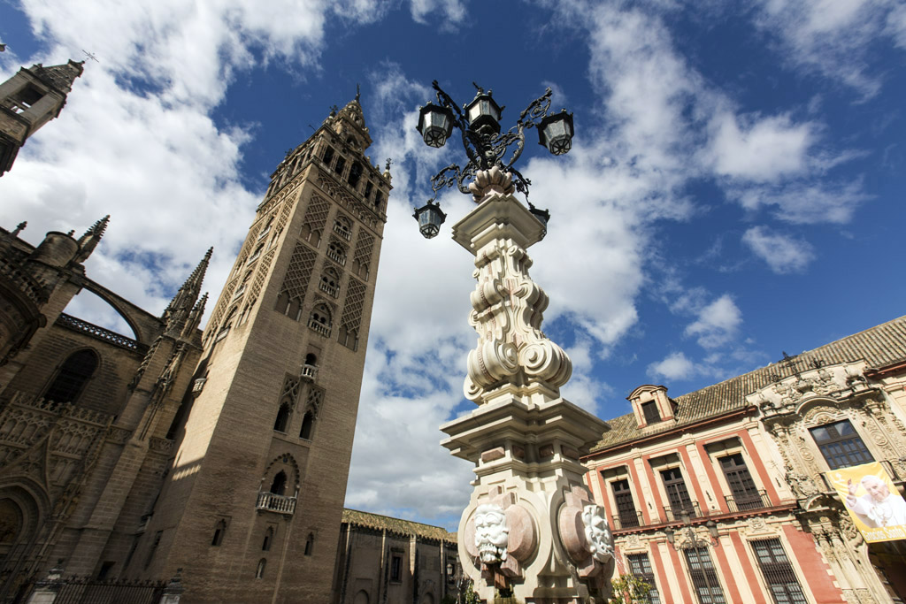 Parece alzar al cielo cien brazos en una plegaria. ¿Por los fieles, por Sevilla? A su lado te sentirás extasiado y luego pequeño, que no cunda el pánico, por muy alto que seas parecerás un gnomo, está hecho a posta, la idea de grandeza primó desde el comienzo; se cuenta que un clérigo, cuando la proyectaban, propuso “hagamos una iglesia que los que la vean nos tomen por locos”, y lo consiguieron; se dice que es la catedral gótica más grande de cuantas existen. El origen lo encontramos en el siglo XII durante el dominio musulmán cuando se erigió una mezquita de la que hoy se conservan la Giralda y el Patio de los Naranjos. Tras la Reconquista promovida por Fernando III de Castilla, la mezquita se usó durante un tiempo como catedral cristiana sin ser reformada. Tras ser demolida se comenzó a construir la nueva catedral sobre el año 1.400; pasó por modificaciones hasta el siglo XVII en que se construyó El Sagrario, la iglesia barroca. Lo dilatado en el tiempo de su